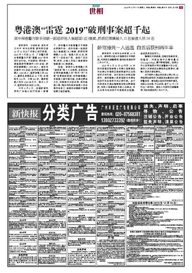 020-87568381 登报热线: 注销公告、开业公告 13802733392 (微信同步) 挂失声明、清算公告 遗失声明 广州市白云区华梓展览柜制作部遗失公章一枚,现声明作废。 遗失声明 广州泓意自动化控制技术有限公司遗失已填开的广东增值税专用发票(发票联、抵扣联)1份,发票代码:4400193130,发票号码:25663520,已盖发票专用章,特此声明。 遗失声明 广州市白云区黄石廉诚不锈钢经营部遗失营业执照副本,统一社会信用代码92440101L3566826 5G,编号S1192014046492G,声明作废 遗失声明 广州市白云区石门广运鞋材店遗失营业执照正本,统一社会信用代码:92440101MA5CX7G755,编号:GS112019125243,声明作废。 遗失声明 广州迪内罗电子有限公司不慎遗失开户许可证正本,核准号:J5810112752001,现声明作废。 遗失声明 李奇峰遗失营业执照副本,统一社会信用代码:92440101MA5AB97398,现声明作废。 遗失声明 广州市金桂园农业有限公司遗失营业执照正、副本,统一社会信用代码:91440101576014595Q,编号:S1012019053179G,声明作废。 遗失声明 广州市花都区新华美佳美容美发店遗失税务登记证正、副本,税号:422101197610153922,现声明作废。 遗失声明 广州市花都区新华美佳美容美发店遗失营业执照正、副本,注册号:440121600138219,现声明作废。 遗失声明 广州聚昌泰贸易有限公司遗失营业执照副本,统一社会信用代码:91440101MA5CL28T5L,编号:S2612019050684,声明作废。 遗失声明 广州市花都区新雅健芬货运代理服务部遗失营业执照副本,统一社会信用代码92440101MA5A RHTR4H,编号S2192018007752G,声明作废。 遗失声明 广州市丰宇轩餐饮有限公司遗失公章(行政章)、财务专用章各一枚,现声明作废。 遗失声明 广州市花都区狮岭卡路意皮具厂遗失营业执照副本,统一社会信用代码:92440101MA5AA3YUX E,编号:21912025984G,声明作废。 遗失声明 深圳市家宜多实业有限公司狮岭商场遗失卫生许可证,证号:粤卫公证字[2015]第0114G00030号,现声明作废。 遗失声明 广州市海珠区啊征广告设计制作部遗失营业执照副本,统一社会信用代码:92440101MA59U31 M21,编号:S0592017018363G,声明作废。 清算公告 广东赋鼎书刊传媒有限公司股东决定,本公司停止经营,清理债权债务。请债权人自本公司公告见报之日起45天内,向本公司清算小组申报债权。逾期不申报,视为放弃权利。清算结束后,本公司将向公司登记主管机关申请注销登记。 遗失声明 绿维(广州)新能源汽车科技有限公司(统一社会信用代码:91440101MA59N92821)遗失广州市《网络预约出租汽车道路运输证》,车牌:粤ADE3020,运输证号穗交0056935号,车牌:粤ADB1603运输证号穗交0063342号,现声明作废。 减资公告 广州市车品投贸易有限公司股东会决议,注册资本由原来1111万元人民币减少至50万元人民币。请债权人自本公告见报之日起45日内向本公司申报债权,逾期不申报,视为放弃权利,本公司将向公司登记机关申请变更登记。 清算公告 广州市中锐广告有限公司股东会决议,停止公司经营活动,于2019年9月9日成立清算组,开始清理债权债务。请债权人自本公告见报之日起45日内,向本公司清算小组申报债权,逾期不申报,视为放弃权利。清算结束后,本公司将向公司登记主管机关申请注销登记。 减资公告 广州广利纸制品有限公司股东会决定,注册资本由原来50万元人民币减少至1万元人民币。请债权人自本公告见报之日起45日内向本公司申报债权,逾期不申报,视为放弃权利,本公司将向公司登记机关申请变更登记。 遗失声明 广州市海珠区准点广告设计制作中心遗失营业执照副本,统一社会信用代码:92440101MA5AK JJU2Q,编号:S0592017021147G,声明作废。 遗失声明 穗晔(广州)贸易有限公司遗失广东增值税专用发票(抵扣联、发票联)1份,发票代码:4400192130,发票号码:34747513,已填用,已盖发票专用章,特此声明。 遗失声明 广州市良信投资管理有限公司遗失营业执照正、副本,统一社会信用代码91440101304399030Y,注册号440106000978802,声明作废。 遗失声明 广州市海珠区幺有广告设计制作中心遗失营业执照副本,统一社会信用代码:92440101MA5AQ H0J9E,编号:S0592018003494G,声明作废。 遗失声明 江曰升遗失营业执照副本,注册号:440104600112741,编号:S0492014044972G,现声明作废。 遗失声明 广州市良信投资管理有限公司遗失公章(行政章)、财务专用章、法人(胡宇)私章各一枚,现声明作废。 遗失声明 广州市海珠区桦明百货商行遗失营业执照正、副本,统一社会信用代码:92440101MA59H5N90N,编号:05913034266G,现声明作废。 遗失声明 广州市番禺区市桥帕东鞋店遗失营业执照副本,统一社会信用代码:92440101MA5ATELB56,编号:S2692018010682G,声明作废。 遗失声明 广州市花都区新雅亮钦小吃店遗失营业执照正本,统一社会信用代码:92440101MA5CCPKT5R,编号:S2192018026726G,声明作废。 遗失声明 广州俊希电子科技有限公司遗失地税税务登记证副本,税号:440111673460175,现声明作废。 遗失声明 广州俊希电子科技有限公司遗失国税税务登记证副本,税号:440100673460175,现声明作废。 遗失声明 广州市璇奕枫贸易有限公司遗失营业执照副本,统一社会信用代码:91440111MA59BQPN2D,编号:S1112016004373(1-1),声明作废。 遗失声明 黄立兵遗失营业执照正、副本,注册号:440105600490099,编号:S0592014051532G,现声明作废。 遗失声明 广州市骏展商旅服务有限公司遗失公章、财务专用章、法人(于敬杰)私章各一枚,现声明作废。 遗失声明 广州君悦心理
