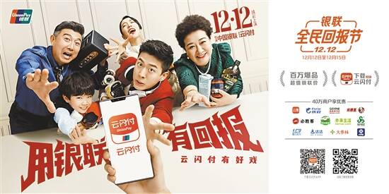 近日,正值云闪付APP 7.0版本全新发布之际,中国银联宣布全民回报节将于12月12日正式启动。本次全民回报节将从12月12日持续至12月15日,在此期间,消费者可使用云闪付APP、银联二维码、银联手机闪付等银联移动支付产品,在超过40万家线下商户门店以超值优惠价格(部分低至原价1折以下)购买百万爆款商品。境外商户也将首次参与12·12全民回报节,为消费者带来诸多惊喜。 本次12·12全民回报节具有四大亮点: 40万商户品牌齐参与,满足衣食住行全方位消费需求。此次银联12·12全民回报节覆盖40万品牌商户,涉及衣食住行各类生活场景,如沃尔玛、家乐福、全家、快客等连锁超市,肯德基、真功夫、小杨生煎等快餐美食,屈臣氏、万宁、娇兰佳人等美妆护肤门店,京东到家、网易严选、我买网等电商平台,付费通、货拉拉、顺丰等生活服务类APP。此外,还有洗衣、生鲜、教育培训、影视读书、保险金融等各行业的商户参与本次银联12·12全民回报节,全方位满足消费者日常生活的各类消费需求。 首创银行业爆品促销模式,百万人气爆品低至1折以下。在延续以往全场5折形式的基础上(有封顶金额),本次银联12·12全民回报节精选百万人气爆品,开启银行业首创的爆款商品促销模式,以最低低至1折以下的优惠价格回馈广大消费者,如在ok便利店可1元购买巧克力或柠檬茶,在及时便利店1元购买红牛或纸巾,或者前往百佳享受超低价购买油、奶、纸巾等。 银行业共联动,积分叠加带来更多优惠体验。本次银联12·12全民回报节,在银联提供的全场折扣、爆品促销的基础上,农业银行、建设银行、交通银行等十余家银行叠加了多倍积分活动,顺丰、屈臣氏等商户则开展包店等联合宣传,不断提升消费者的支付体验。 全民回报节走向世界,可在境外80大商圈享最高30%折扣。随着银联支付服务拓展至全球177个国家和地区,银联12·12全民回报节也从国内走向世界。活动期间,消费者使用云闪付APP、银联手机闪付、银联卡在日本松屋银座百货、韩国新罗免税店、新西兰DFS免税店、法国春天百货、美国西盟购物中心等80大商圈消费支付,最高可享30%优惠折扣。 近年来,中国银联的惠民举措从未间断。12·12全民回报节之外,银联62节、银联超市节、银联菜场节等活动,让更多老百姓享受到银联移动支付1年365天的优质体验。与此同时,中国银联也持续扎实推进移动支付便民工程,以交通场景为例,银联移动支付产品已覆盖全国30个城市地铁、近1400个市县公交。 伴随着云闪付APP7.0版本全新发布,银联手机闪付覆盖更多主流手机品牌,银联移动支付受到越来越多消费者的喜爱。目前,云闪付APP支持在线申请包括工行、农行、中行、交行、中信、招商、浦发、民生、华夏、平安等20多家银行的200余种信用卡,150多家银行信用卡账单查询与还款,570多家银行借记卡余额查询,用户数已突破2.2亿。银联手机闪付覆盖华为、小米、OPPO、vivo、苹果、三星、魅族等主流手机品牌。全国逾14000家菜场和生鲜门店、逾55万家餐饮商户、近20万家便利店超市、逾30万台自助终端、逾1600所校园、逾1700家医院、逾3000个企事业单位食堂均支持包括云闪付APP、银联手机闪付在内的银联移动支付。 了解更多银联12·12全民回报节详情,请关注“中国银联”官方微信或官方微博,登录活动专题页面(http://hd.95516.com)或下载云闪付APP进行查询,也可垂询银联24小时客服热线95516。