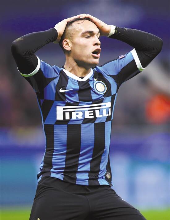 ■国际米兰队球员劳塔罗·马丁内斯在比赛中错失进球。新华社发 |