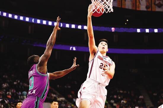 ■广东东莞银行队球员任骏飞(右)在比赛中进攻。 新华社发(资料图) |