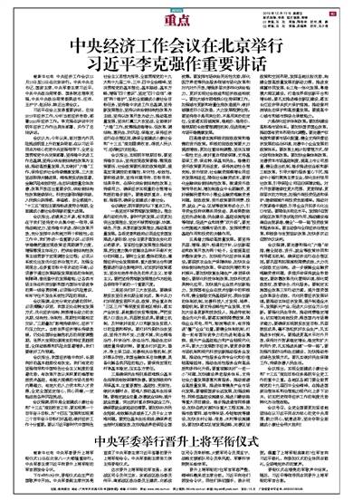 中央经济工作会议在北京举行 习近平李克强作重要讲话