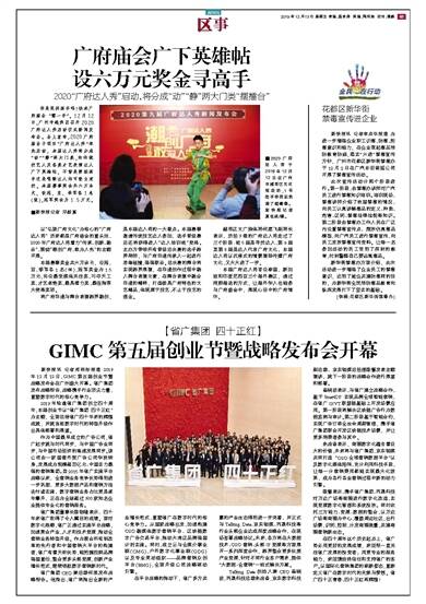 新快报讯 记者郑栩彤报道 2019年12月12日,GIMC第五届创业节暨战略发布会在广州盛大开幕。省广集团发布战略报告,战略携手行业顶尖力量,重塑数字时代的核心竞争力。