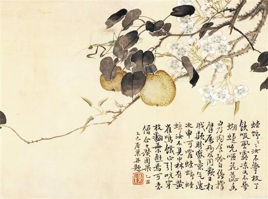 ■居巢《梨花螳螂》,12月14日在番禺博物馆展出。 |