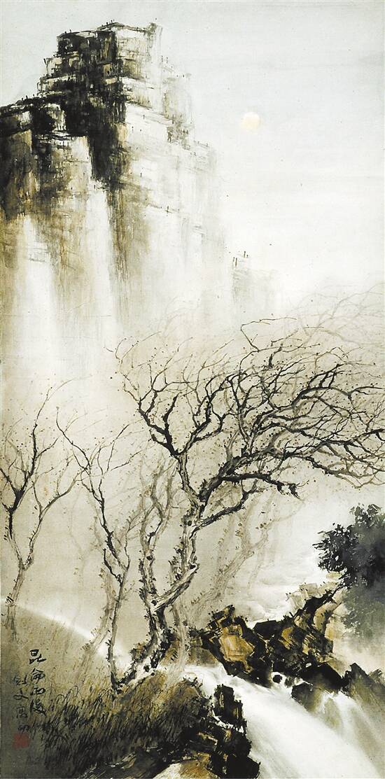■粤海弄潮——院藏高剑父、高奇峰绘画展 高剑父《鸡声茅店月图轴》 |
