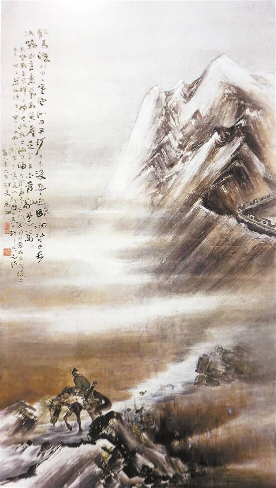■饮马渡关图轴-高剑父广东省博物馆藏1917年 |