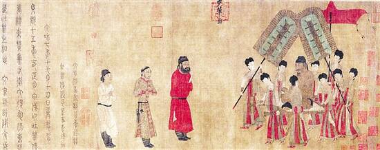 《步辇图》卷 阎立本作(唐) 绢本,设色 纵38.5cm,横129cm |