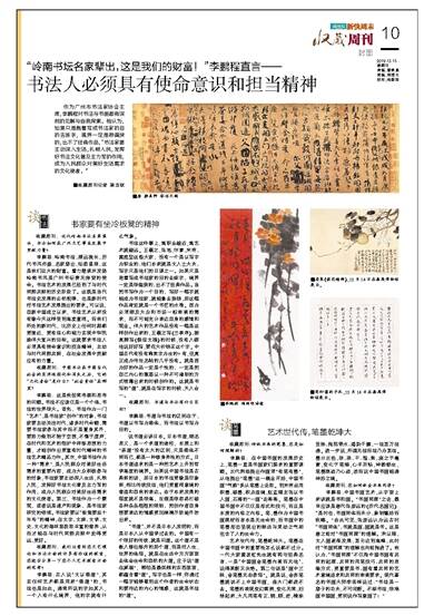 作为广州市书法家协会主席,李鹏程对书法与书画都有深刻的见解与自我探索。他认为,如果只是抱着写成书法家的目的去练字,境界一定是很偏狭的,出不了经典作品,“书法家要主动深入生活,扎根人民,发挥好书法文