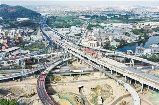 记者了解到,即将通车的花莞高速太成至金盆立交段路线全长13.30公里,起于广州市机场高速太成立交(邻近机场收费站),途经白云区人和镇,跨越流溪河后,往东经钟落潭镇南面,并跨越G105国道,终点于金盆互通立交接入京港澳高速。 横贯机场高速和京港澳高速的花莞高速太成至金盆立交段于2020年1月1日通车后,市民可通过这条新干线进出机场,绕开机场高速(三元里—平沙段)拥堵路段,极大减少路程时间。 花莞高速全线预计将于2020年下半年建成通车,全线长65.18公里,跨越京港澳高速后,向东经黄埔区、增城区,最终接入珠三角环线高速(增莞深高速公路)。花莞高速设计速度100公里/小时,为双向6车道。全线共设置互通立交16处,服务区1处。项目建成后将联通广州白云、黄埔、增城三区,贯通广州空港经济区、中新知识城、增城国际经济开发区等新兴经济园区和科技园区。届时从知识城到白云国际机场仅需15分钟,它也是从东莞至白云国际机场最便捷的快速交通干线。 除了便利出行,这条公路也因“绿色”“安全”“智慧”屡屡获奖,成为广州市唯一入选广东省首批7条绿色公路建设示范工程之一,并获评广东省2018年度“平安工地”典型项目。