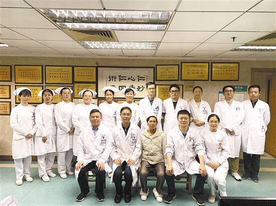 ■患者(前排中)与广州市第一人民医院医护人员合影。 受访者供图 |