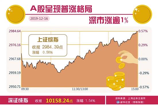 当日,上证综指以2970.97点开盘,全天震荡走升,最终收报2984.39点,较前一交易日涨16.72点,涨幅为0.56%。 深证成指收报10158.24点,涨153.62点,涨幅为1.54%。 创业板指数涨1.42%至1780.33点;中小板指数涨1.78%至6452.13点。 沪深两市个股呈现普涨格局,上涨品种逾3300只,下跌品种逾400只。不计算ST个股,两市逾60只个股涨停。 科创板方面,当日仅热景生物下跌,下跌0.15%;N芯源微涨幅最大,上涨139.15%。 板块概念方面,MLED、全息概念、云游戏涨幅居前,涨幅在5%以上;啤酒、旅游酒店、海南自贸区跌幅居前,跌幅在1%以上。 当日,沪深B指也随之上涨。上证B指涨0.49%至247.12点,深证B指涨0.40%至905.97点。