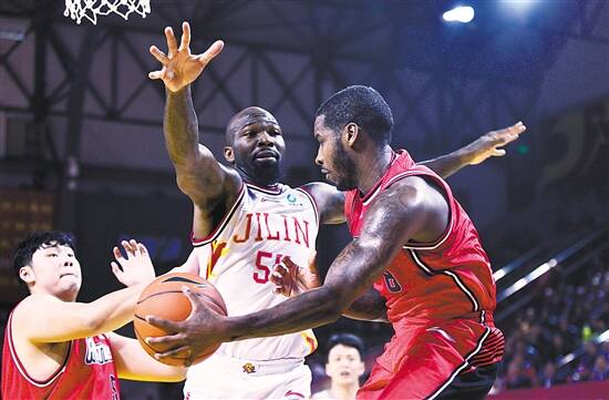 ■深圳球员拜克斯(右)在缝隙中传球。 新华社发 |