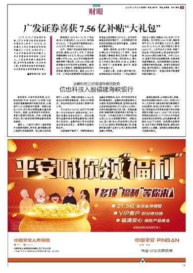 12月18日,广发证券公告称,2019年累计收到各项政府补贴共计人民币7.56亿元,对归属于上市公司股东的净利润贡献达5.2亿元,达到公司上一个会计年度经审计的归属于上市公司股东的净利润的10%以