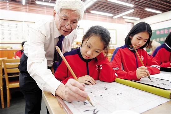 约55%的毕业生到内地升学 濠江中学有4600多名学生,每年保送率达70%。学校鼓励学生去内地学习,约55%的毕业生到内地升学。2016年—2017年度濠江中学保送94位同学到内地的重点大学,包括北大、清华、复旦等名校,占比32%。2017-2018年度保送128人,占比 40%。今年保送118人,占比43%,每年的比例都有所上升。最多一年到暨南大学升学的学生有130人。 20%的澳门公务员来自濠江中学 濠江中学被誉为“爱国人才摇篮”,培养的学生都成为了澳门社会的中流砥柱,在各行各业、各大爱国团体中发挥作用。目前澳门特区政府有5名高层公务员来自濠江中学,局级以上的公务员队伍中濠江校友占了三成,整个公务员队伍来自濠江的占两成,先后有2位澳门立法会主席毕业于濠江中学。 在澳门半岛亚马喇马路上,经过八十七年岁月洗礼的濠江中学安静地坐落于此。 澳门回归20周年纪念日将近,濠江中学的同学们正争分夺秒地准备着19日晚的全澳大演出。回归20年来,濠江中学这所著名爱国中学与祖国的联系愈加紧密,也润物细无声地改变着这所学校。 ■本版采写:新快报记者 吴晓娴 ■本版摄影:新快报记者 孙 毅 反复练习体悟汉字书写的精髓 校园一隅,小桥流水、亭台楼阁,古色古香,聚贤亭的楹联上书“好学精研涉猎古今中外 勤攻善读浸淫春夏秋冬”,透露出这所著名爱国中学的传统文化底蕴。 12月9日,周一上午课毕,兰亭书法协会的同学们陆续来到书法室练习。7年前,濠江中学被中国书法协会定为港澳唯一一所“兰亭中学”,挥毫泼墨氛围日渐浓厚。 平撇、反撇、长提、短提……满头白发、被同学们亲切称为谭sir的书法协会老师老谭在讲台上,一笔一画地讲解着技法,同学们端坐其下,一遍遍练习,体悟着汉字书写的精髓。 老谭在濠江中学教书法已有十几年。平时上书法课,他不仅教学生如何运笔,具体的技法,还会讲到书法文化的知识。“比如书法作品的落款,一般有作者和农历时间,提到农历会讲解天干地支排列的知识。” 学生们在练习书法方面也很花力气。每周除了周一,其他日子早晨的课前半个小时、周五放学后的一个半小时和周六早上的两个小时,是书法协会学生的固定练习时间。 “有些学生课后在这练到天黑,我也会陪着他们。”寒来暑往,学生们的书法技艺日渐成熟,有的学生参加全国性的书法比赛,屡获大奖。老谭介绍着得意门生的作品,嘴角挂着微笑。 在他看来,学生静下心来练习书法,能锻炼他们的毅力和意志力,也能让他们对祖国、对传统文化有更多的热爱和认同。 语文课全面推行普通话教学 写中国字,也学讲中国话。“中国人要讲好中国话。”濠江中学副校长陈虹如是说。 1985年,濠江中学的老校长杜岚开始在学校里推行普通话教学。尤端阳说,当年杜岚老校长推广普通话时,学校主任组织老师讨论,当时市民、学生、老师都讲粤语,大家都不习惯讲普通话。 陈虹记得,一开始学校很少老师会讲普通话。上世纪80年代开始,学校开始聘请内地的老师,鼓励所有老师在语文、历史和公民课上讲普通话。老师还要参加培训,通过普通话测试。2000年左右学校在语文课上全面推行普通话教学。目前学校内地老师有20多人,占全部550名教职员工的3%左右,其中还不包括已经融入澳门社会,拿到澳门身份证的。 濠江中学校长尤端阳认为,推广普通话对学生来说很有必要。学生回到内地升学,起码第一年能听懂普通话,学习就没有多大困难,这对他们今后的工作很有利。 这里升起澳门第一面五星红旗 事实上,濠江中学与祖国的紧密关系、深厚的爱国传统根植于其创办之初,一脉相承。 从1932年成立至今,濠江中学已有87年的历史。尤端阳说,学校一直奉行着爱国爱澳、为社会培养人才的办学宗旨,花大力气做爱国主义教育,同时,澳门很多传统爱国学校也奉行同样的理念。 “在抗日战争和解放战争期间,濠江中学为内地输送了很多人才,有些校友在战场上牺牲了。”尤端阳说,1949年10月1日,中华人民共和国成立,杜岚老校长凭借勇敢和无畏,冲破澳葡当局的重重阻挠,升起了五星红旗。 由于当时条件有限,订购不到五星红旗,杜岚按着托人拍来的五星红旗照片,用红、黄两色布料,自己缝制了一面。1949年10月1日清晨,在师生们的凝视下,鲜艳的红旗在濠江中学上空升起,飘扬了3天,这也成为澳门第一面升起的五星红旗,这面红旗一升就是70年。 教学改革恰恰是从内地学校学来的 尤端阳说,濠江中学校史中最重要的一件事之一便是大刀阔斧的教学改革,而这恰恰是向内地学校学来的。“我们到山东去学习,每次有约10个老师全身心参与他们的课堂、晚自习、课余活动、分享。我们还分批派老师去顺德一中,一去就是2个礼拜,进行全过程的学习,已经有80位老师到过顺德一中,还有大批老师去了顺德实验小学。” 他说,以前濠江中学的教学模式是老师满堂灌,去了内地学习之后觉得他们的方法很新颖,便逐渐吸收过来。现在采用自主管理、自主学习、合作学习、探究性学习的方式。 “同学们用这样的方法学习,他们的语言表达能力、书写能力、评价能力、综合能力都大大提高。 高中毕业之后,濠江中学的学生也很愿意去内地升学。“祖国对澳门学生有多优惠政策,作为澳门的学生幸福感很强。他们也看到祖国的发展,认为能从内地学到东西,学成之后除了可以为澳门服务,还能留在内地发展。”