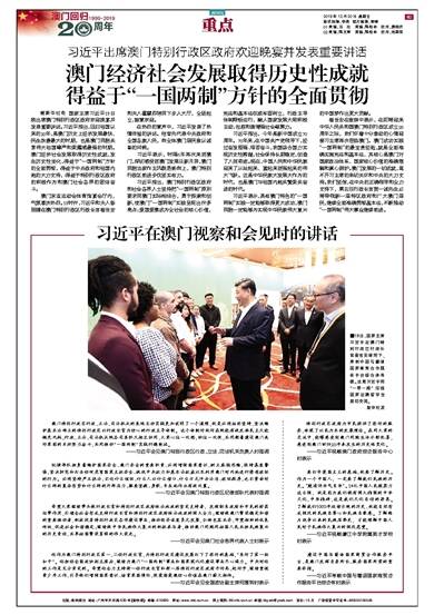 据新华社电 国家主席习近平19日晚出席澳门特别行政区政府欢迎晚宴并发表重要讲话。习近平指出,回归祖国以来的20年,是澳门历史上经济发展最快、民生改善最大的时期,也是澳门同胞共享伟大祖国尊