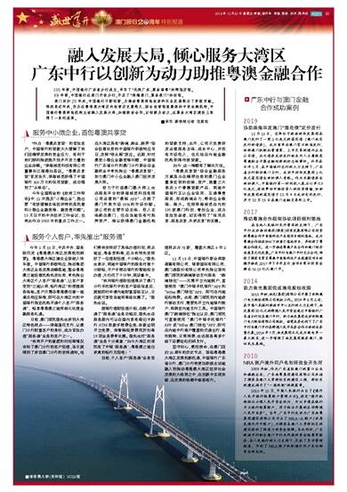 融入发展大局,倾心服务大湾区 广东中行以创新为动力助推粤澳金融合作