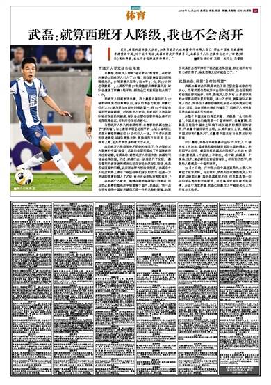 近日,有国内媒体撰文分析,如果西班牙人在本赛季不幸降入西乙,那么中国球员武磊将考虑重返中超。对于这个说法,武磊