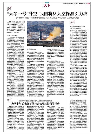 据新华社电 12月20日,随着长征四号乙运载火箭腾空而起,“天琴一号”技术试验卫星成功飞向太空