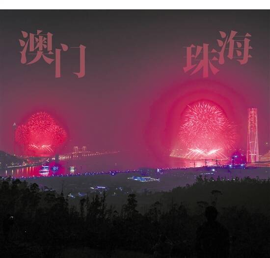 ■昨晚9时,“庆祝澳门回归祖国20周年澳珠烟花汇演”在澳门旅游塔(左)和珠海横琴金融岛对出海面举行,这是澳门与珠海首次联合举行烟花汇演。新快报记者 孙毅 实习生 何松轩/摄