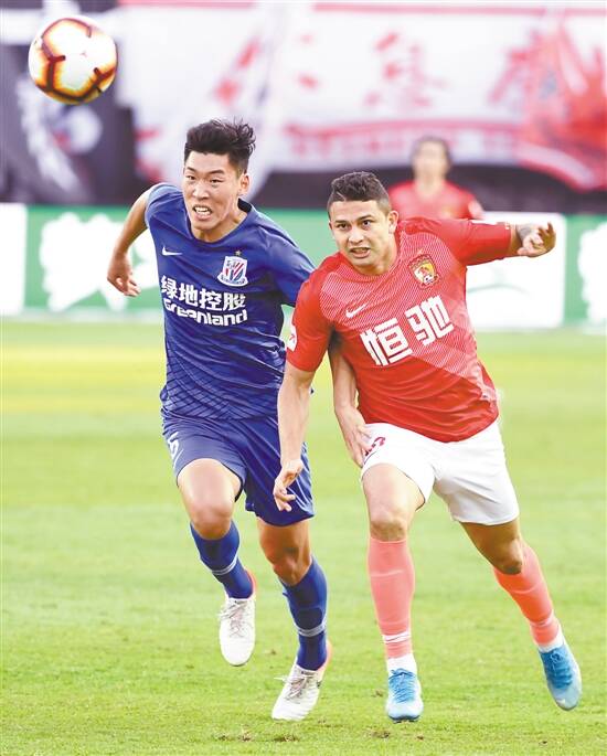■政策调整后,将严格限制“俱乐部投资帽”。图为广州恒大淘宝队球员艾克森(右)与上海绿地申花队球员朱辰杰在比赛中拼抢。新华社发 |