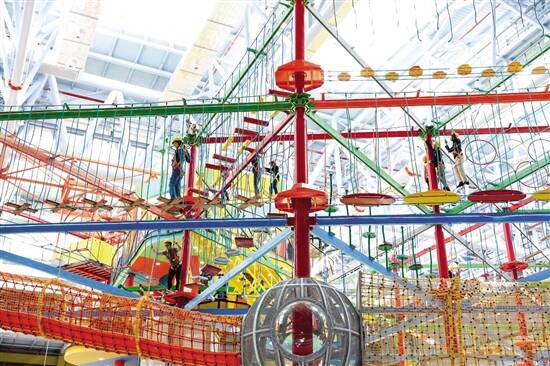 广州融创文旅城旗下的大型综合体育创新业态——广州融创体育世界日前正式开业。作为“体育+旅游”的新形态乐园,广州融创体育世界融合了体育、旅游、休闲、亲子等元素,创造出多元化运动社交平台。 广州融创体育世界占地1.86万平方米,设有活力体验、激情赛道、功夫学堂、冒险岛、运动嘉年华等5大区域,拥有22项体育项目,有潮玩类的射箭馆、电子气步枪、CS,有适合团建的各种攀岩、攀爬、蹦床,也有专为儿童设计的儿童驾校、跑酷、火山攀爬等。其中,卡丁车项目采用目前比较少有的立体型赛道,车辆选用法国原装进口电动无燃烟赛车,具有低噪音,无尾气、电子控速等特点,游客可以在全长560米的上下穿插双层赛道上尽情驰骋,体验F1方程式赛车现场的极限速度感受。而“超越极限”则属于大型室内组合攀爬项目,沿途所设的绳索路径以及高空滑轨等设施均架构在十几米的高空中,需要十足的勇气和毅力,才能通过重重险阻到达终点。 和广州融创乐园一样,广州融创体育世界也实行分票制经营,即按项目售票。22个项目中,有最刺激好玩的“疯狂卡丁”,也有适合小朋友的“功夫学堂”,定价不等,给予了游客自由选择权。此外,园方还推出组合票和游乐卡等票种,如疯狂卡丁4次票360元,功夫学堂亲子票100元,超越极限亲子票120元,游乐卡100元/200元/500元等,满足游客的不同游玩需求。