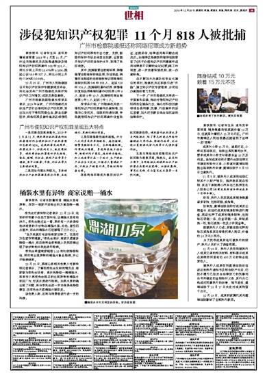 新快报讯 记者何生廷 通讯员穗检宣报道 2019年1月至11月,广州全市检察机关共批准逮捕涉及侵犯知识产权犯罪案件558件818人,同比分别上升约18.47%和6.2
