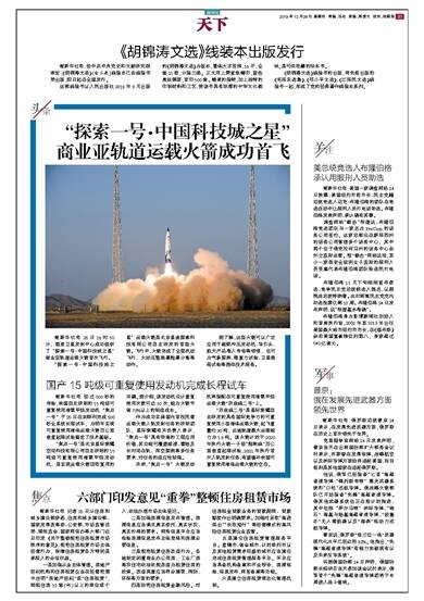 “探索一号·中国科技城之星” 商业亚轨道运载火箭成功首飞