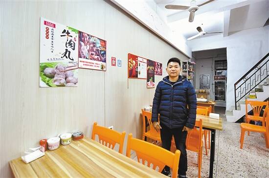 ■回乡创业(从事餐饮业)的陈义鑫,把自家小店打理得整洁明亮。 |