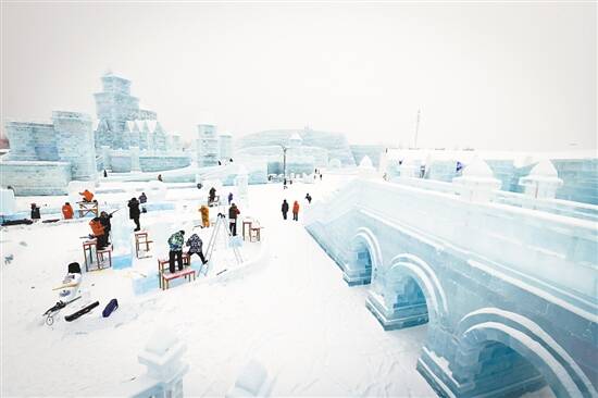 像 1月7日,参赛者在进行冰雕创作。当日,在哈尔滨冰雪大世界园区举行的第三十四届中国哈尔滨国际冰雕比赛进入第二天,参赛的冰雕作品已芳容初现。 新华社发