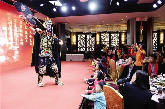 ■吴超佳和伙伴表演的变脸节目, 吸引了一圈小朋友围在台前。 |