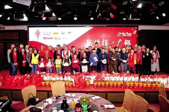 ■策划:新快报记者 张英姿 ■统筹:新快报记者 潘芝珍 ■采写:新快报记者 严 蓉 李斯璐 潘芝珍 ■摄影:新快报记者 王 飞 开席8年 共宴请2000余人团年 背后故事 羊城晚报报业集团管委会委员,新快报社社长、总编辑许志权出席活动并致辞。他说,2013年2月6日中午,100多名来自五湖四海的父母受到邀请,牵着儿女,从这座城市的四面八方出发,赶赴一场温暖团年饭。“他们大多素昧平生,唯一的相似,是他们的孩子正遭受着重病折磨,城市的年味越来越浓,心里的乡愁越来越重,但他们不能回家,大年夜,出租屋或病房里,父母能给孩子的,可能只是一个盒饭。” 8年前,为离乡贫病家庭准备的这场家宴,正是新快报天天公益发起并主办的爱心团年饭。时至今日,爱心团年饭已连续举办8年,总数超过2000名的困难人员因之欢聚,体尝人间真情。 这些年,越来越多的公益机构和爱心企业加入团年饭活动,同心协力,将爱心团年饭打造成为广州的一张公益名片。许志权诚挚感谢参与2020“新快报·广铝爱心团年饭”的公益团队和爱心企业,并对场内提供服务的志愿者及义演团队给予盛赞:“还要感谢挥毫泼墨礼赞人间真情的书画家,因为你们,我们的家宴更加美满。” 500多人以茶代酒 同许新春愿望 火热现场 活动指导单位广州市妇联、广州市慈善会相关负责人也来到现场,与新快报社长许志权,常务副总编辑冯树盛,新快报社社长助理、经营负责人林波,广东恤孤助学会葛晓红,广东广铝公益基金会理事长吴作荣,广州多益网络股份有限公司工会主席、副总裁颜海冰,广东太古可口可乐有限公司工会副主席李振辉等主办、协办单位,支持单位代表为赴宴嘉宾送上迎春祝福,并送出装有米油、腊肠、冬菇、红枣、可口可乐等年货大礼包。 已87岁高龄的广东省人民政府文史研究馆馆员、原书法院副院长吴俊明,广州市文联名誉主席乔平,广东省书法家协会副主席陈春盛,广州市书法家协会副主席陈凯及广东书法院展览教研部主任罗炳生则以字行“益”,为助力爱心团年饭的单位和责任企业挥毫赠墨宝,褒扬正能量。 颜海冰女士表示,多益网络作为国内十大游戏研发运营商之一,一直坚守正道,积极履行社会责任;这次加入“爱心团年饭”的爱心阵营,正是秉持“积善成德,多多益善”的初心,希望能为社会带来更多正能量,“天天公益,与爱同行,我们一起在行动!” 广东太古可口可乐有限公司工会副主席李振辉也为众人送上了新春的祝福,同时祝愿爱心团年饭越办越好。李振辉介绍,广东太古可口可乐有限公司长期关注困难群体,持续投身公益,而“乐善好义”也是企业的自我要求,期待今后继续与新快报携手,帮助更多人把爱带回家。 “早晨5点就醒了,生怕年龄大睡过头,赶不上爱心团年饭。”63岁的胡伯从白云区赶来,坐定后认真听完主办方致辞,“转了几次公交车,好在没迟到。”他告诉记者,失去老伴和独子的十多年里,他还没有吃过一次像样的团年饭,“这么多人,这么热闹,这么暖心的话……我很感动!” 在主持人建议下,与胡伯同聚一堂的大小朋友以茶代酒起立碰杯,“健康顺利、万事如意!”“新春快乐,梦想成真!”500多人异口同声,齐齐响应。 广铝集团首次冠名爱心团年饭 “八方共聚,情义更浓,我们有幸欢聚在一起,感受情义广州的温暖,庆祝新春的到来。”广东省广铝公益基金会理事丘伟娟在致辞中代表活动冠名方,向场内人士送出祝福。 她说,作为广东500强企业,广铝集团是唯一一家经营着铝全产业链的企业,虽取得骄人业绩,却从不曾忘记初心。在过去几年里,广铝公益基金会积极开展各项公益慈善活动,累计捐赠达数千万元,“本次冠名赞助爱心团年饭,既是广铝集团关爱有需要群体的暖心行动,也是助力广州公益事业发展、回馈社会的有力举措。” 据广铝公益基金会秘书长陈耿介绍,广铝集团有限公司是本土企业,理应承担更多社会责任。2020“新快报·广铝爱心团年饭”是一场能帮到广州许多困难群体的活动,以爱给大家关心、关怀,“整个活动让人感到非常温暖。” 陈耿表示,对于企业而言,做公益是秉承企业取之社会,回馈于社会的核心价值理念。“我们希望,通过公益,通过助学,改变一个人的一生,让更多人过上美好生活。从另一个角度来说,也响应了国家号召,为实现中国梦添砖加瓦。” “就在2019年的最后一天,华南碧桂园中英文幼儿园(以下简称华碧幼儿园)举办了爱心团年饭义卖活动,在不到两个小时的时间里,筹款4万多元。两年来,华碧幼儿园的孩子们共为我们的‘爱心团年饭’筹集善款7万多元。”广东公益恤孤助学促进会副会长兼秘书长葛晓红提及华碧幼儿园的善举笑逐颜开,她表示,将继续携手新快报和社会各界爱心人士,在公益慈善路上不断前行,帮助更多有需要帮助的群体,为建设守望相助的社会作出贡献。