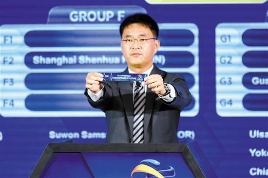 ■去年12月10日,亚足联竞赛部负责人申晚吉在抽签仪式上展示广州恒大队抽签结果。 当日,2020年亚冠联赛小组赛阶段抽签仪式在位于马来西亚吉隆坡的亚足联总部举行。 新华社发 |