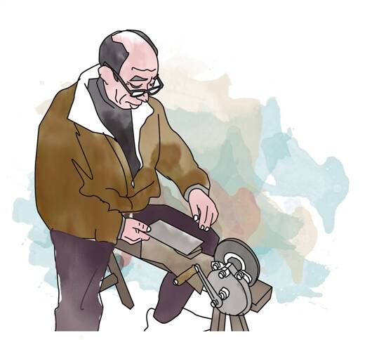 磨刀、补鞋、裁衣…… 有多少手艺已经消失,有多少手艺正在消失。 在广州这个大城市,有哪些手艺人还在为生活而奔波,同时服务了街坊。 他们的手艺并不显眼,甚至可谓之“小”,但一技傍身,只要肯做并且坚持做下去,就能成就大人生。 我们将记录这些小人物的点点滴滴,呈现给读者。欢迎推荐和自荐各种手艺人,除了见诸报端,还可以集合在一起,成立一支手艺人服务队,走进社区,造福社群。 一个外乡人,在广州走街串巷二十多年,今年67岁,已经到了退休年龄,从事着普通人看不上眼的工作,他却甘之如饴。他说,自己的工作自由,想下班就下班,中午必定回家午休,收入不比普通白领差,不愁没生意,可以养家,也可以帮助他人。他活得有滋有味。 他叫周维俊,是在广州已经少见的磨刀匠。“磨刀喽!”每一天,他用一声声吆喝为广州的包容写下注脚,见证着这个城市的变化。 磨刀收入 不输白领 这天下午,新快报记者要采访磨刀匠周师傅,约好下午2时在广州地铁燕塘站A出口见面,见到他时,只见他靠着垃圾桶睡着了。记者唤醒他,和他一起穿过人行天桥,到了金燕花苑小区大门外。 “磨刀喽!”周师傅抽着烟,不时吆喝一句。不时会有人过来围观、问几句,周师傅不算太热情。他说,问答几句就知道谁是真心磨刀的,谁只是好奇地问一下价格。 等了半个多小时,没有一个顾客。周师傅说,生意分时间段,上午10时至12时、下午4时至6时是旺时,顾客买完菜、上楼把刀拿下来磨。掌握了规律,周师傅一般上午9时出来,赶上午的热点。中午回家睡个午觉,下午4时30分再出来。 “今天上午磨了7把刀,赚了80多元。”周师傅告诉新快报记者,这算少的,一般上午会赚100多元,下午200多元,算起来月收入也有7000元至9000元,抵得上普通白领。 “磨刀也‘埋堆’,顾客看到有人磨刀,自己会来帮衬。”周师傅说,他熟悉市内多个小区的磨刀情况,于是在广州各个区转,番禺、从化、南沙都去过。 磨出利刃 磨出耐性 等了1个小时,终于有顾客来光顾。一名师奶捧着一个泡沬箱来找周师傅,里面装着3把刀。 照例是要讨价还价。师奶先开口:“便宜点啦!我磨3把刀。”周师傳则淡定地回答:“这个小区我常来,都这个价——菜刀磨一把10元,剪刀5元。” 成交。“这把是厚钢板做的,好刀!”周师傅一边说,一边转动起砂轮,顿时火花四溅。周师傅说这几把刀都没开刃,肯定不锋利。 两人闲聊之间,又有几个街坊跑进小区回家拿刀去了。周师傅一口气磨了4把刀,每把收费10元,费时两三分钟。周师傅说,当天的生意不算好,前几天在燕塘小区,一天下来磨了50把刀,挣了460元。 “现在很少看到磨刀师傅了。”街坊黄大姐告诉新快报记者。对此,周师傅表示认可。上世纪九十年代,小区、大型楼盘没有现在这么多,他每天靠走街串巷拉生意,现在一般在大型楼盘前一坐,生意就会自然来。周师傅总结出经验:做磨刀生意一定要定点等,不能急于求成到处乱跑。 城中同行 越来越少 周师傅是安徽淮北人,今年67岁。他高中毕业后在村里当会计,1995年来广州,磨刀20多年,在市内的杨箕村、达道路、京溪等地都住过。周师傅的父亲也是磨刀师傅,上世纪八十年代就来广州磨刀。9年前父亲去世了,他把父亲送回了安徽老家,又回到广州继续磨刀。 “去年,(市内)还有5个老乡做磨刀,今年就剩我了,他们年纪都比我大。现在年轻人都不做这个,这活要承受日晒雨淋……”周师傅说,现在的白领喜欢吃外卖,在家做饭少了,磨刀生意也比不上从前,但还是有需求。新买回来的刀如果不开刃,只有一点刀锋,用一会儿就不利了,都需要磨了才能开刃。“有一次,有一个街坊拿了十多把刀来。他是因为找不到磨刀师傅,旧刀不锋利又买新刀,逐渐积下了这么多刀”。后来,这个街坊终于找到周师傅,十多把刀开刃花了100元,这个街坊很满意。 小小生意 讲究不少 很快,小区住户的刀磨完了,周师傅走入一条商业街,继续吆喝:“磨刀喽!” 一间发廓的老板要磨刀,但这位顾客有特殊要求:刀只让磨一面。周师傅毫不在意,只见他先用砂轮磨刀,再用盐水磨平它。他说:“盐水对钢有粘作用。”但此刀太硬,周师傅只好动用了“神器”——钢铲刀,用铲的方式削铁,令刀刃锋利起来。看来,磨刀也是技术活,工具和功夫都要具备。 这时,有两个顾客说回去拿刀,周师傅就一边闭目养神一边等,或许他是真的累了。的确,周师傅的装备不轻:砂轮1个、粗和细磨刀石各1块、钢铲刀1把。新快报记者试着扛了扛,有二三十斤重。一位近70岁的老人,扛着这个担子走街串巷,不容易。 便民服务 小区欢迎 这时,城管人员注意到周师傅,叫他不要当街摆摊。周师傅换了一个地方,继续干活。这在当天,已经是周师傅第二次被城管人员赶了。城管人员彬彬有礼,周师傅也配合。 周师傅告诉新快报记者,他经常受邀到各个小区提供便民服务。物业公司每次给他三四百元或六七百元不等的费用,让他给业主免费磨刀。周师傅有个小本子,记着“业务”:海珠区光大花园请他去了三次,天河区某楼盘请他去了两次,天河区林和东小区三次。周师傅每个月会这样“进小区”三四次,街坊对他的服务很满意,有的会额外给他送红包。周师傅的小本子上记着这些联系单位,随叫随到。 磨刀生涯 自得其乐 下午5时45分,周师傅收摊回家了。华灯初上,广州闹市区的大街上人流如梭,有不少归家人。周师傅告诉新