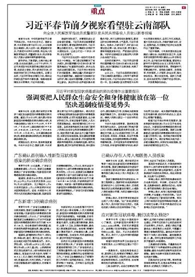 广东确认首例输入性新型冠状病毒 感染的肺炎确诊病例
