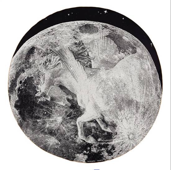 ▲以皓洁的巨大月盘为背景的斜纹真丝“月光”围巾。 |