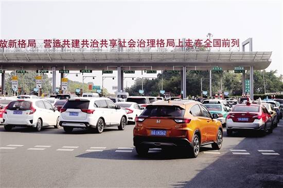 ■免高速路费期间,往往容易出现塞车情况。新快报记者 毕志毅/摄(资料照片) |