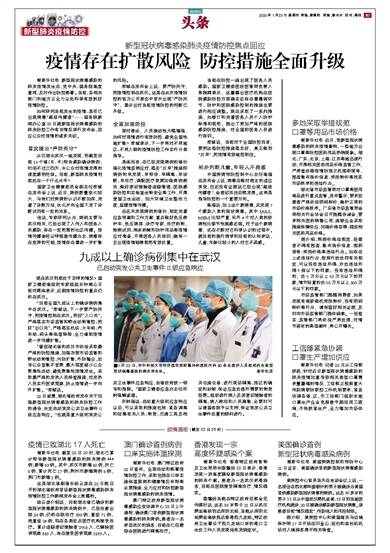 据新华社电 新型冠状病毒感染的肺炎疫情发生后,党中央、国务院高度重视,及时作出防控部署。当前,各相关部门和地方正全力以赴科学有效抓好疫情防控。