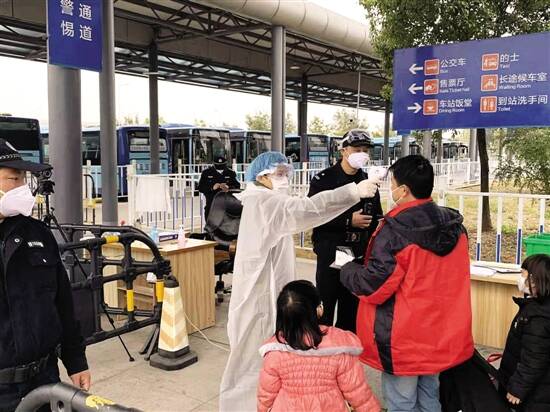 ■刘英在常平镇汽车站为过往旅客测体温。 |