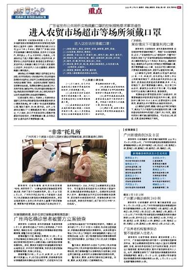 新快报讯 记者黎秋玲报道 2月5日,广东省新型冠状病毒感染的肺炎疫情防控指挥部办公室发布《通告(粤防疫指办通〔2020〕2号)》(以下称2号通告),更新了广东省公共场所实施佩戴