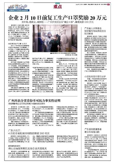 新快报讯 记者朱清海 通讯员范敏玲 钟飞兴 郭哲涵报道 2月10日前复工生产防护口罩等急需医疗物资的企