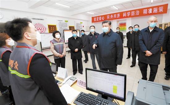 ■10日,中共中央总书记、国家主席、中央军委主席习近平在北京调研指导新冠肺炎疫情防控工作。这是习近平在朝阳区安贞街道安华里社区,了解基层一线疫情联防联控情况。新华社发 |