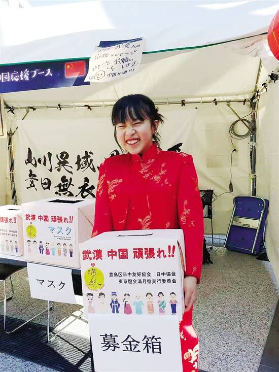 ■2月8日,在日本东京池袋的元宵节庆祝活动现场,一名日本女孩身着红色旗袍为中国抗击新冠肺炎疫情募捐。新华社发 |