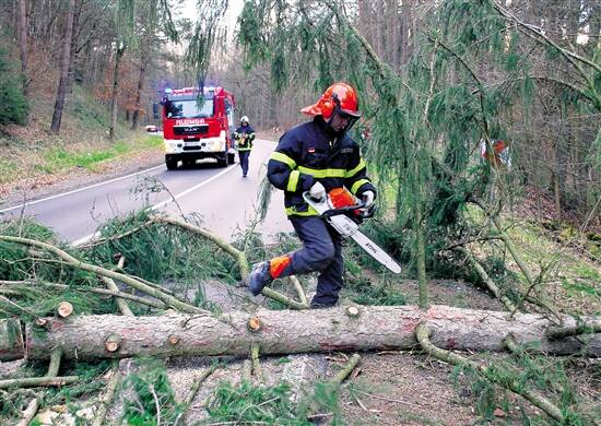 ■10日,在德国北莱茵-威斯特法伦州伊瑟隆市,消防队员清理被飓风吹倒的树木。 新华社发 |