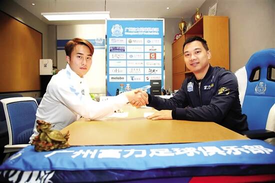 ■王鹏(左)与广州富力队完成签约。 广州富力足球俱乐部/图 |