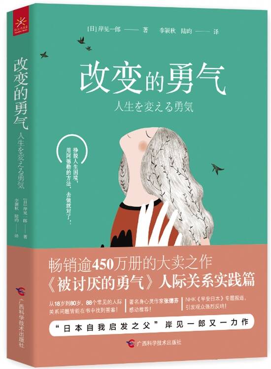 那么,如果是阿德勒遇到这些问题,他会如何应对呢? 近日,百万畅销书《被讨厌的勇气》的作者岸见一郎就为读者提供了答案。他的又一力作《改变的勇气》是在汲取了阿德勒个体心理学的知识和营养并结合自己多年心理咨询经验的基础之上,创作出来的。这本书筛选了88个常见的人际关系问题,从阿德勒个体心理学的角度,采用“提问”加“解答”的形式,为读者分析问题,并提供解决方法。读者在阅读的过程中,可以获得解决实际人际关系问题的思路,与此同时还能不断增强自信,重获希望,鼓起勇气做出改变,从而改善自己的人际状况,消除人际烦恼,让自己的人生从此发生翻天覆地的变化。 该书编辑表示,相较于《被讨厌的勇气》,《改变的勇气》这本书更加深入人们的日常生活,更加具有实践意义。可以说,《改变的勇气》其实就是《被讨厌的勇气》的人际关系实践篇。只要读者能够按照书中所述的方法去做、去实践,会发现人生中的很多烦恼会慢慢地消失。(王春燕)