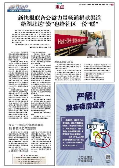 新快报联合公益力量畅通捐款渠道 给湖北送“炭”也给社区一份“暖”