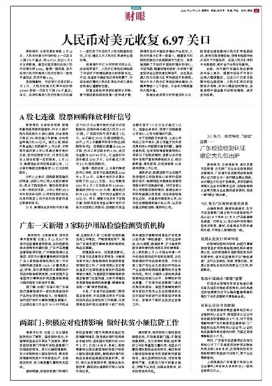 新快报讯 记者陆妍思 通讯员粤市监报道 记者2月12日从广东省市场监督管理局获悉,在防控新冠肺炎疫情的关键时期,广东产品质量监督检验研究院、广州检验检测认证集团、深圳