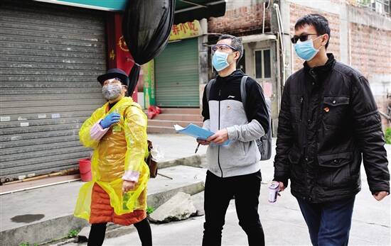 ■新快报记者 潘芝珍 通讯员 李美全 担当作为,抢上一线防疫 疫情防控进入关键期,社区必须建起坚强堡垒。针对社区防疫管控工作量大、涉及面广及外来返城返工人员持续增加等情况,清远市委组织部、市新冠肺炎疫情防控指挥部办公室等6部门近日联合印发《关于组织动员各领域党员干部投身城乡社区疫情防控一线工作方案》,动员全市各级党组织和广大党员干部投身城乡社区一线疫情防控工作。通知发出后,清远市农业农村局广大党员踊跃报名,2月14日,包括董广辉在内的13名党员光荣入选。 作为全市8支党员突击队之一,董广辉与同事被派往清城区源潭镇三坑新村协助防疫工作。2月15日,13名“农干”党员冒雨上岗,在偌大村落挨家挨户敲门,楼上楼下摸查,“居民的防疫意识普遍很高,非常配合我们的工作。”董广辉说。 村干部潘伙筹告诉新快报记者,节前全村有2400多人居住 ,外来务工人员占到三分之二,返城高峰到来后人流渐渐变大,社区防控压力也随之增大,截至2月16日,节后返村的省外人员已超过800人,接下来几天,随着附近几家大工厂陆续复工,返城人员将更加密集。“我们从年三十开始就没有休息过,一直连轴转。现在有农村农业局党员突击队来支援,不仅缓解了我们的压力,也让全村人更有信心应对疫情。” 上岗两日,入户摸查176户 突击队充实了城乡社区防控工作力量,与村疫情防控小组紧密合作,承担起入户摸查线索的任务。 上岗首日,清远大雨倾盆;次日,气温陡降10摄氏度。但无论暴雨还是寒风,都不能阻挡突击队员的脚步,13人分成4组,两天排查176户租户,详细登记240名外省来粤人员的信息,未发现发热及与新冠肺炎患者有接触者。“我们把返城人员信息摸查清楚,也提醒村干部落实‘房东负责制’,督促房东梳理信息及时反馈情况。”突击队员陈海英说,利用入户排查机会,突击队还“客串”宣传队,逐户宣讲防疫知识,筑牢联防联控、群防群治防线。 昨日正午,气温仍徘徊在10摄氏度以下,董广辉与队友们坐在村口临时搭起的防雨棚里,一人一个盒饭,边吃边讨论工作。“真冷,好在套了雨衣,还能挡挡风。”一位突击队员笑着打趣道。 队员身上的雨衣是清远市农业农村局为突击队员准备的防护物资之一。记者了解到,对下沉到疫情防控一线的党员干部,清远市农业农村局全力做好后勤保障,局长张伟杰要求办公室为13名突击队员购置了护目镜、口罩、雨衣、雨鞋、手套等防护物资,勉励每个人在做好个人防护的同时,坚决完成防疫任务。 女儿问他,“爸爸你不怕死?” 董广辉的女儿也知道爸爸有“防控任务”,虽然她只有10岁,却从电视中了解到新冠肺炎可能取人性命,“爸爸你不怕死?”知道爸爸要去一线战“役”,她皱着眉头问。“如果每个人都怕死,就有更多人感染疾病。”董广辉抱抱孩子,戴上口罩出门。 董广辉在扶贫开发指导科任职,奋战在脱贫攻坚战场上的他,仍自觉秉持着转业军人的特质——忠诚果敢,听令即行。今年春节,他带着妻子和女儿回到岳母家过年,“10年没有回去看岳母,没想到假期只有4天。”他笑笑,“大年初二我说要回广东,70多岁的老人家竟然气到不搭理我。” 年初三一早,知道女儿女婿真要走,老人抹着泪摘菜捡蛋,塞了一后备箱。“你是党员,现在国家有困难要你去,安心走吧!”车开出老远,老人还站在门口挥手,董广辉从倒后镜里看着岳母,眼眶发热。 疫情爆发后,董广辉每天都在关注新闻,那些被新冠肺炎虏获的个体和家庭,还有战斗在一线的医护人员,常常令他泪目,“真恨自己不是学医的,遗憾不能去一线。”他说,能报名参加党员突击队,也算是满足了自己一直想冲在一线的愿望,“我和同事都会不负众望,尽全力做好社区疫情防控工作。”