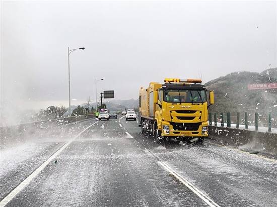 受寒潮影响,京珠北路段梅花至大桥段选家栋大桥、梅岭大桥、云望大桥、雾观大桥等桥面、路肩、护栏出现结冰现象。南行往广州方向梗下分离立交桥测得最低温为零下3.6摄氏度,冰面最厚近1厘米;乐广北路段坪石至乐昌段部分护栏有薄冰,路面湿滑。 凌晨1时40分,经与交警沟通联系,京珠北高速梅花至乳源段双向封闭,上午9时45分,南行分流点前移至坪石北互通。南下往广州方向车辆在坪石北互通(粤北站至坪石站)分流至乐广高速行驶,梅花站往广州方向出口分流、入口封闭;乳源站往湖南方向出口分流、入口封闭;大桥站、东田站双向入口封闭,坪石站往广州方向入口封闭。 受冷空气影响,2月15日晚清远连州发布道路结冰黄色预警信号。当晚10时45分,广东二广高速紧急启动冰雪天气灾害预警响应,路段在九嶷山至丰阳双向易结冰路段撒布融雪剂,提前预防路面结冰。路面没有发生结冰现象,目前车辆可正常通行。 同样位于粤北地区的武深高速仁新段也未出现降雪结冰现象,路段运行正常。 昨天上午10时30分,驻点在京珠北梅花北抗冰指挥分中心的“狂风吹雪车”上路开始除冰。在巨大的轰鸣声中,路面的冰雪飞腾起来,身后留下干净的路面。