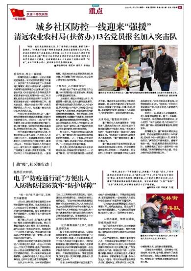 “您好!我们是疫情防控人员,为了您和家人的健康,需要了解一些情况。”口罩遮不住董广辉眼里的笑意,他拿出纸笔登记住户信息,身边的同事则挨个为屋里的人测体温。从2月14日正式加入清远市党员突击队以来,