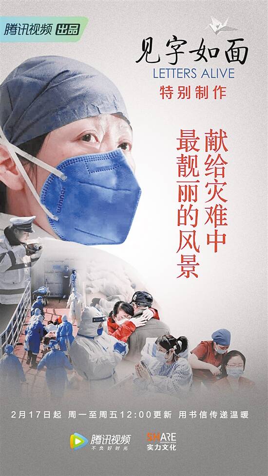 ■新快报记者 徐绍娜 15封书信感动人心 新型冠状病毒肺炎疫情暴发后,全国普遍实施隔离措施,同时,大批的医务工作者、科研工作者、干警、基层干部逆流而上,义无反顾地奔赴救死扶伤的前线,在全国各地各条战线,与时间赛跑,争取攻克病毒,保民平安。其间,通信也成了人们交流的最主要方式,通过网络,产生了大量感人的信件。此次,腾讯视频与《见字如面》团队希望能将这些信件读给大家听,鼓舞前方斗志,传递正能量。 《见字如面》总导演关正文称,入选的15封信,计划播出三周,希望能比较全面地反映疫情期间多种战斗岗位的境况和心态。其中,有医护人员写给家人的,也有家人鼓励一线战士的,有写给警察的,写给小卖店老板的,也有写给快递小哥的,有妈妈写给儿子的,也有孩子写给父母的。有标准的信件,也有诗歌,题材各有侧重,各有感动人心之处。 “距离除夕你离家奔赴武汉七天了。七天,日子长得像是一年。”2月17日中午,首期节目上线,演员叶璇读了来自上海的一位医务工作者夏江临写给支援武汉前线的丈夫许诗琨的信。在这个特殊的时期,仅仅读了几句拉家常的话,叶璇已有些哽咽。 许诗琨是同济大学附属东方医院的一名急危重症护士,作为上海首批支援医疗队成员,在今年除夕夜举家团圆的时刻告别家人,连夜赶赴武汉。1月26日年初二下午2点半,他所在的上海医疗队正式进驻并接管武汉金银潭医院北2楼普通病房和北3楼重症监护病房。信中,夏江临表达了对丈夫的无比自豪,并称:“有千千万万像你一样的英雄在前方,我们很安心,我们有信心战胜它。有你们这群‘逆行者’的顽强拼搏,这场没有硝烟的战争终将取得胜利。” 明星在家自行录制 除了叶璇,李光洁、海一天、吉杰等演员和歌手也参与了节目录制。与以往的《见字如面》不同的是,这次特别版由于在疫情期,大家都在自觉隔离,无法按照《见字如面》的原有形式搭建舞台、组织观众、明星登场,而是由明星在家自行录制,再经过后期团队剪辑包装后上线播出。关正文称,也许疫情过后,再看这些视频会有些粗糙,“但我们希望能够尽最大努力精致化,让我们将来再看也不后悔,争取能够成为这个特定时期的一种特殊的记忆方式。” 值得一提的是,此次抗疫特别制作版从决定制作到节目上线,仅用了四天的时间。关正文透露,在过去的这个周末,节目组很多年轻的编导就像前线的不同岗位的战友一样,连续奋战,三十小时没睡觉。参与录制的演员也是克服各种困难在家里开干,自己打灯,自己拍摄,还有的演员是在参加其他义演的间隙克服困难完成录制。 为了保证节目质素,除了明星的录制,节目组的编导一边选编信件,一边还下载大量的图片、视频、音乐素材,建立了配乐读信单曲MV的特别节目样式。“几乎所有演员录制完成之后,都特别期待自己的MV剪辑完成的样子。剪辑完成给他们传过去,回复全是满满的感动。疫情对所有人都是灾难,但灾难之中有大家,有温暖,有勇毅,让我们看到了人间最美的风景。”关正文说。